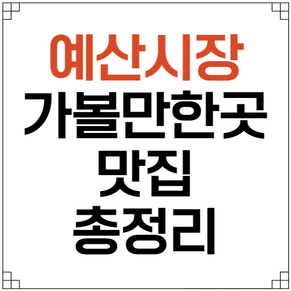 이번 글에서는 예산시장에서 꼭 가봐야 할 곳과 추천 맛집, 방문 시 유용한 정보까지 총정리해드리겠습니다.