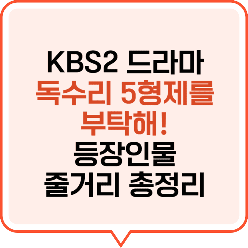 KBS 2TV 주말드라마《독수리 5형제를 부탁해!》는 전통 막걸리 양조장 '독수리술도가'를 배경으로, 개성 넘치는 5형제와 맏형수의 좌충우돌 가족 이야기를 그린 작품입니다. 2025년 2월 1일 첫 방송 이후, 따뜻한 가족애와 유쾌한 스토리로 시청자들의 큰 사랑을 받고 있습니다.